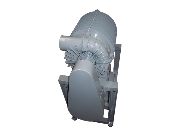 旋涡气泵的叶轮由数十片叶片组成,它类似庞大的气轮机的叶轮。叶轮叶片中的空气受到了离心力的作用向叶轮的边缘云运动,在那里空气进入泵体的环形空腔,然后又返回叶轮,重新从叶轮的起点以同样的方式再进行循环。叶轮旋转所产生循环气流,以级高的能量离开气泵以供使用。