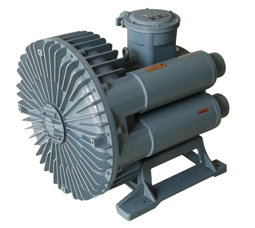 旋涡气泵的叶轮由数十片叶片组成,它类似庞大的气轮机的叶轮。叶轮叶片中的空气受到了离心力的作用向叶轮的边缘云运动,在那里空气进入泵体的环形空腔,然后又返回叶轮,重新从叶轮的起点以同样的方式再进行循环。叶轮旋转所产生循环气流,以级高的能量离开气泵以供使用。